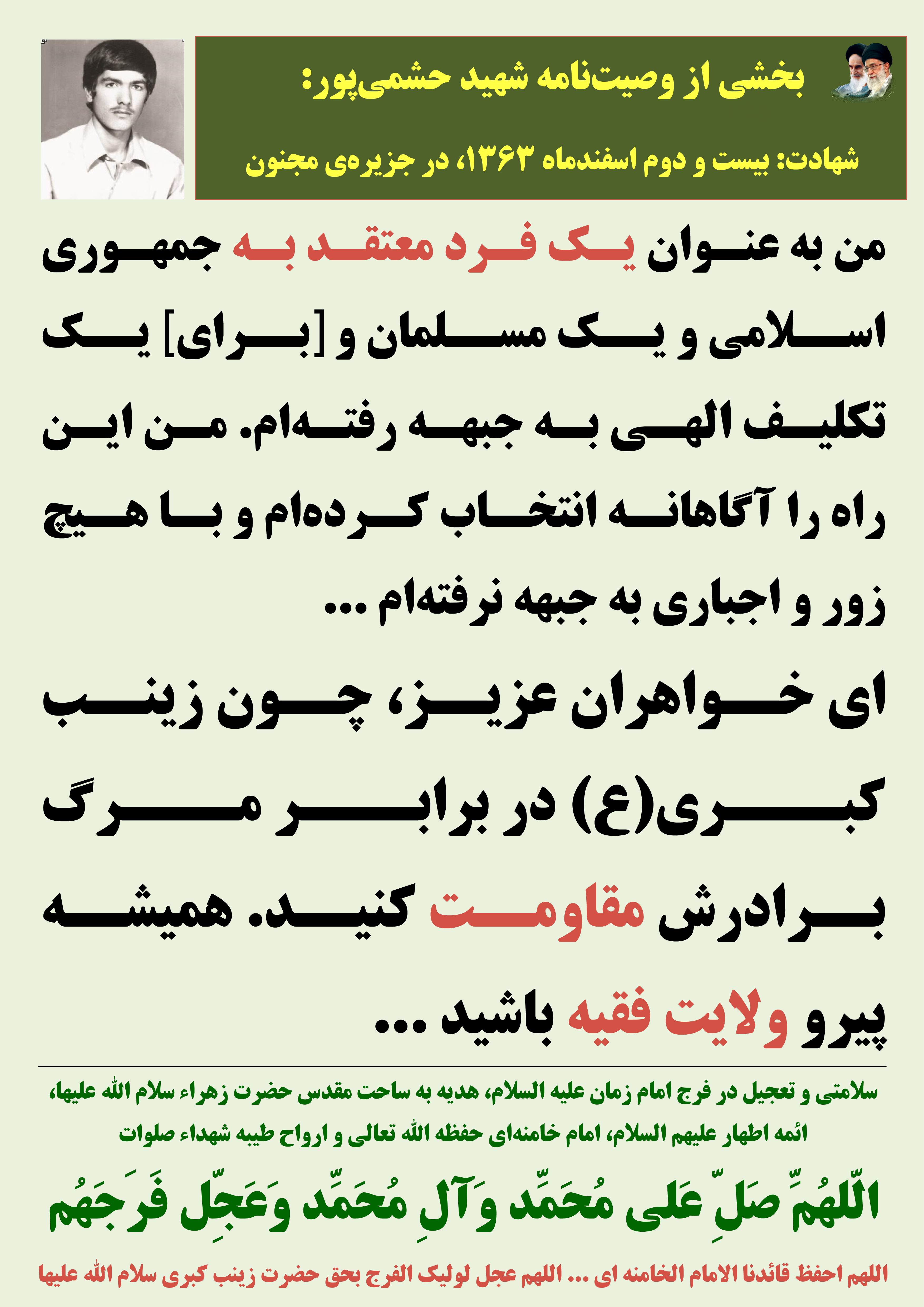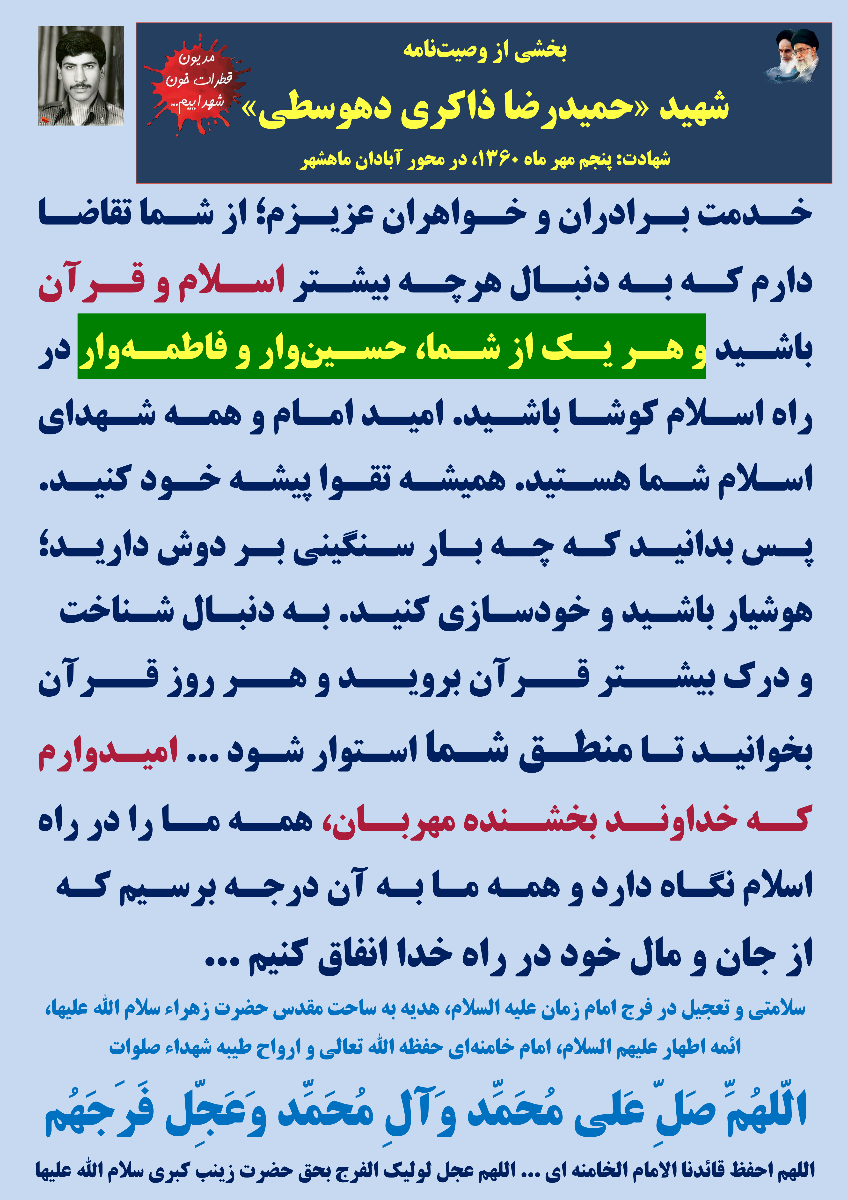 بخشی از وصیتنامه شهید «حمیدرضا ذاکری دهوسطی»