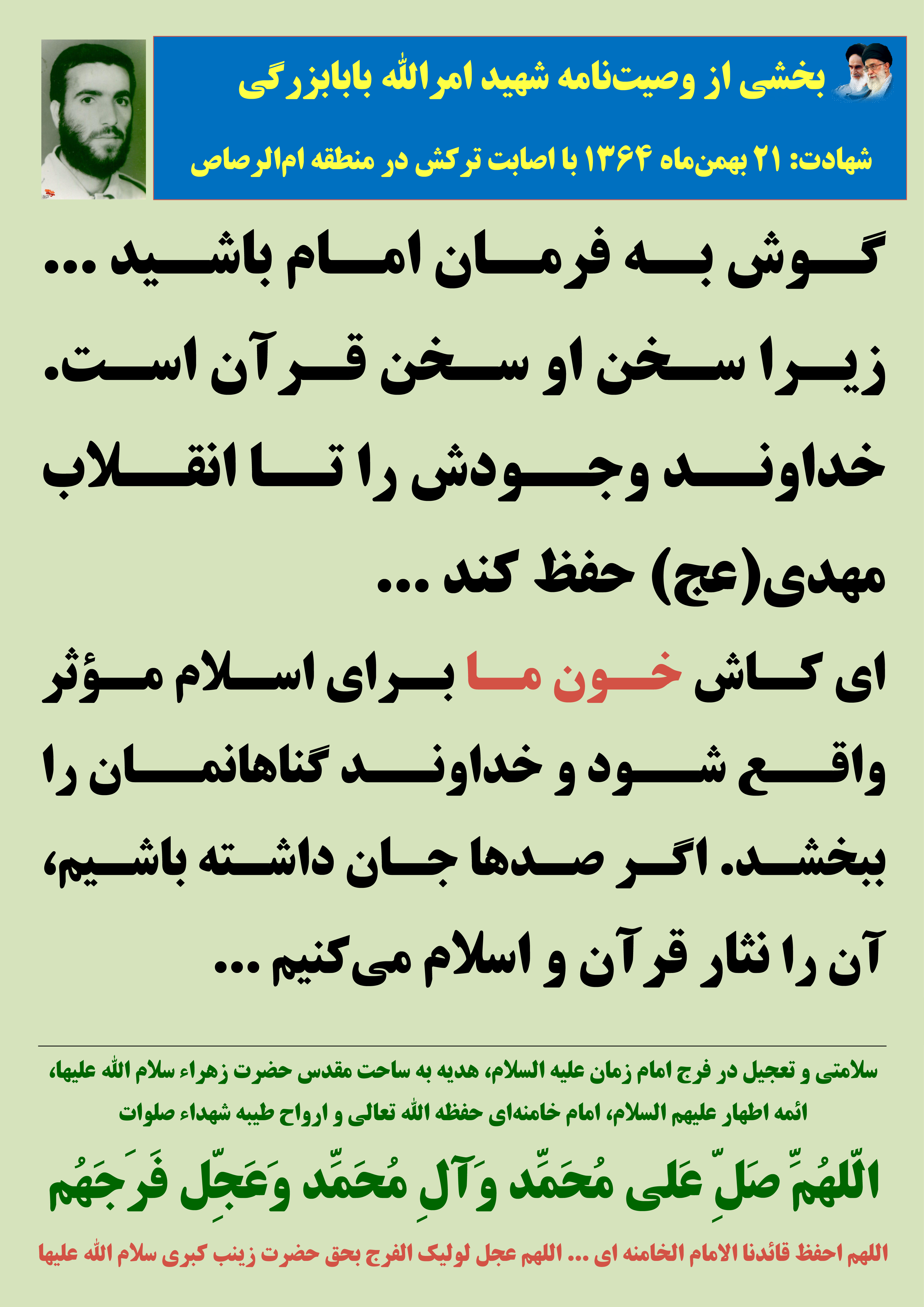 بخشی از وصیتنامه شهید امرالله بابابزرگی