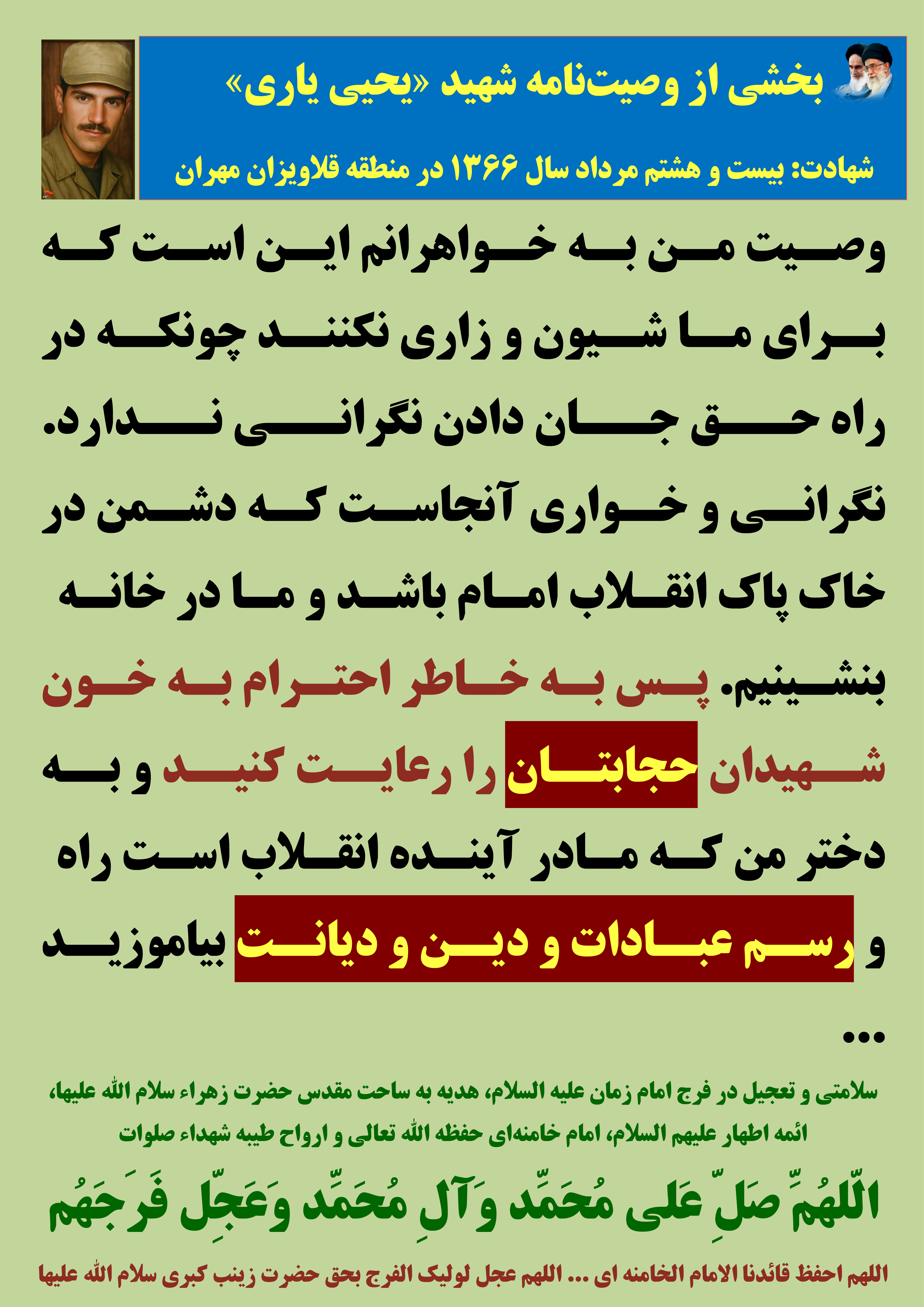 بخشی از وصیتنامه شهید «یحیی یاری»
