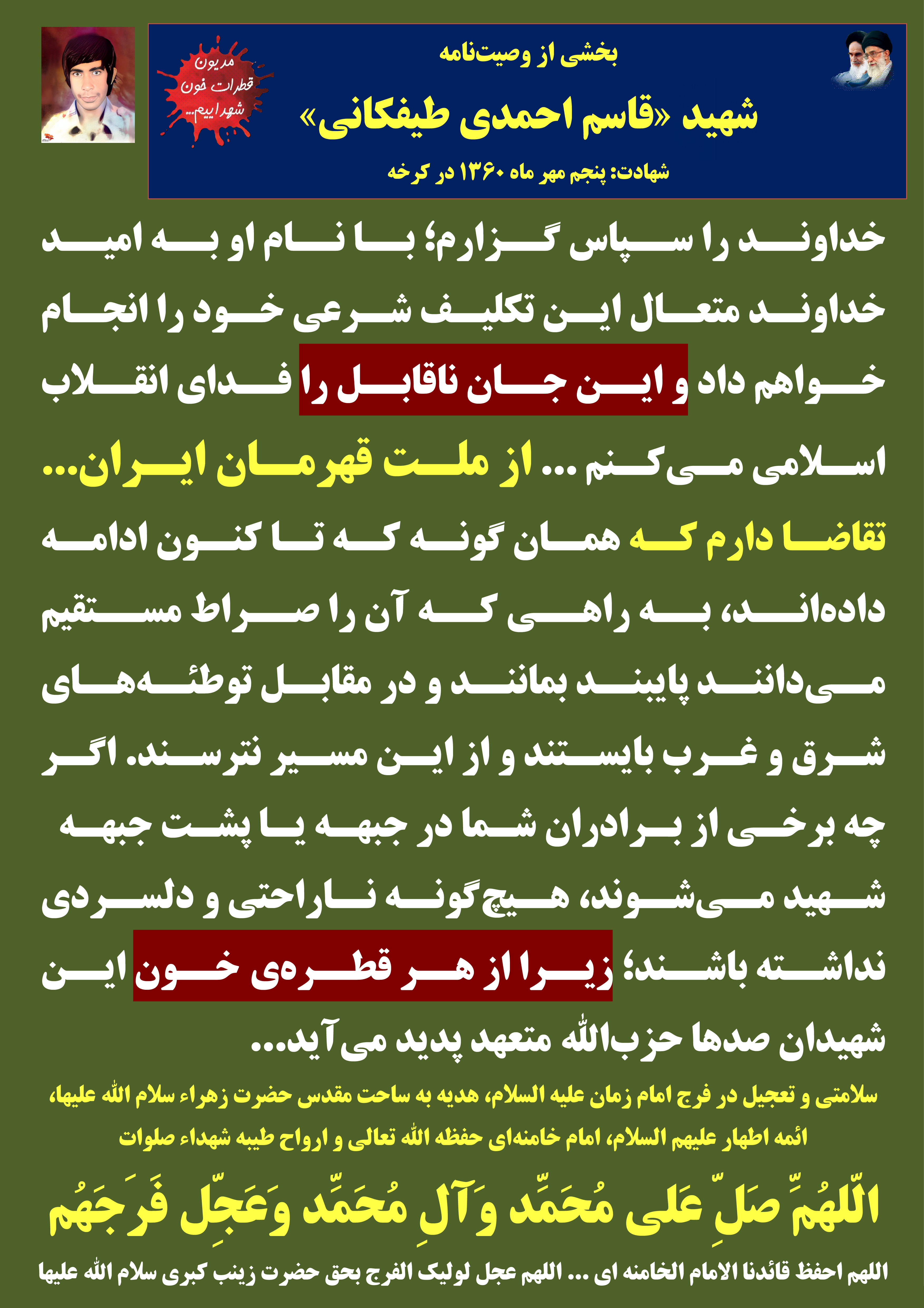 بخشی از وصیتنامه شهید «قاسم احمدی طیفکانی»