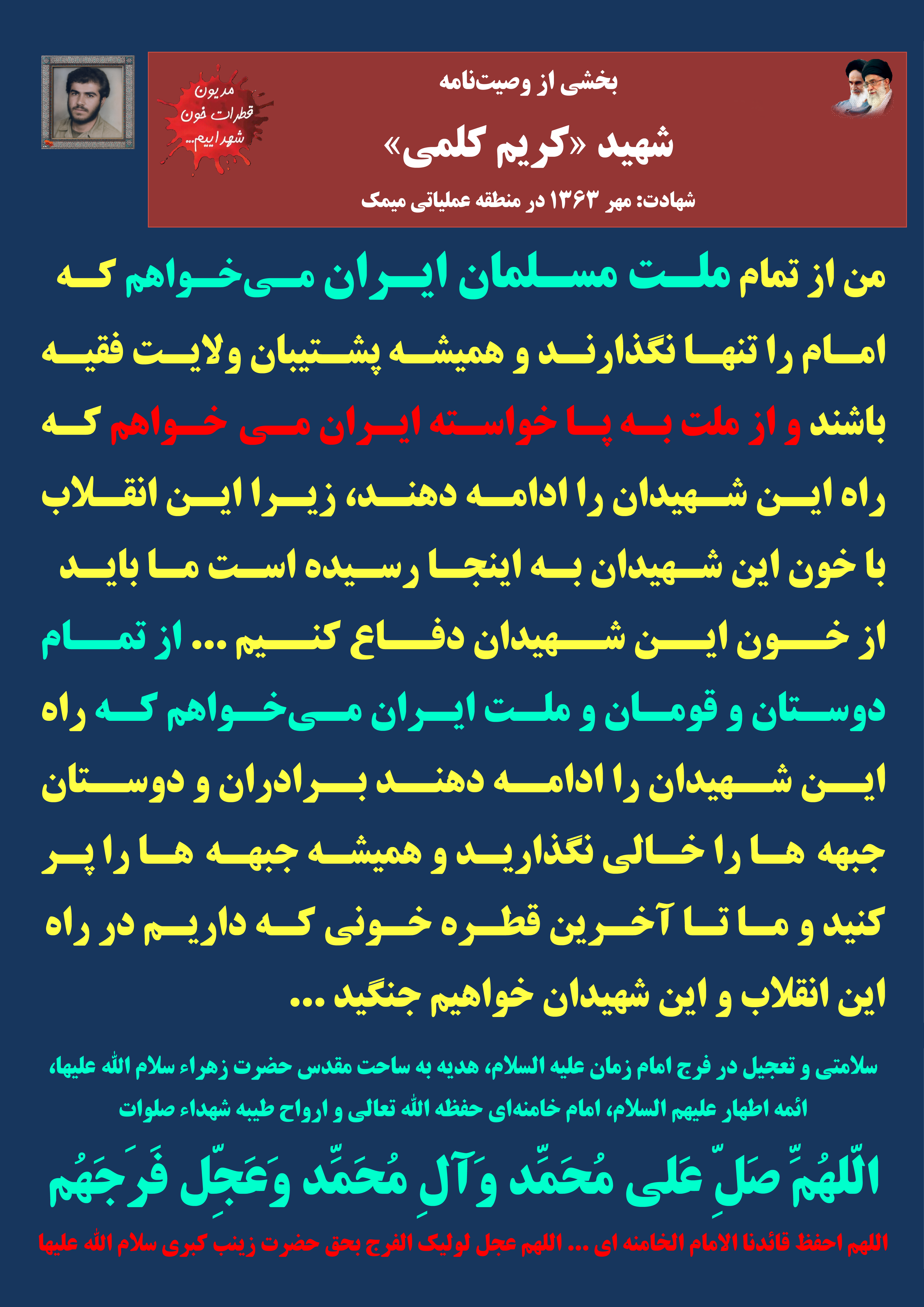 بخشی از وصیتنامه شهید «کریم کلمی»