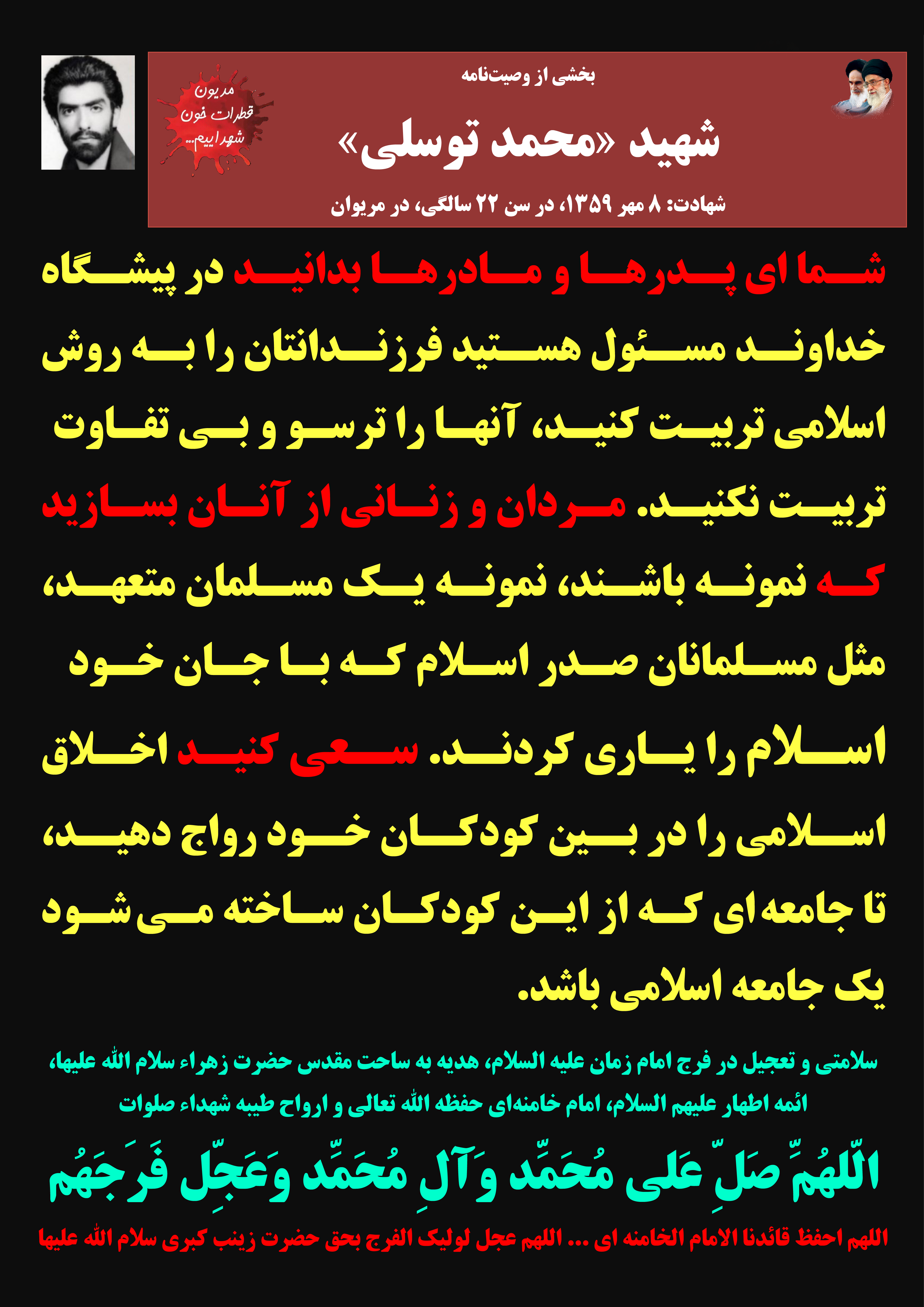 بخشی از وصیتنامه شهید «محمد توسلی»