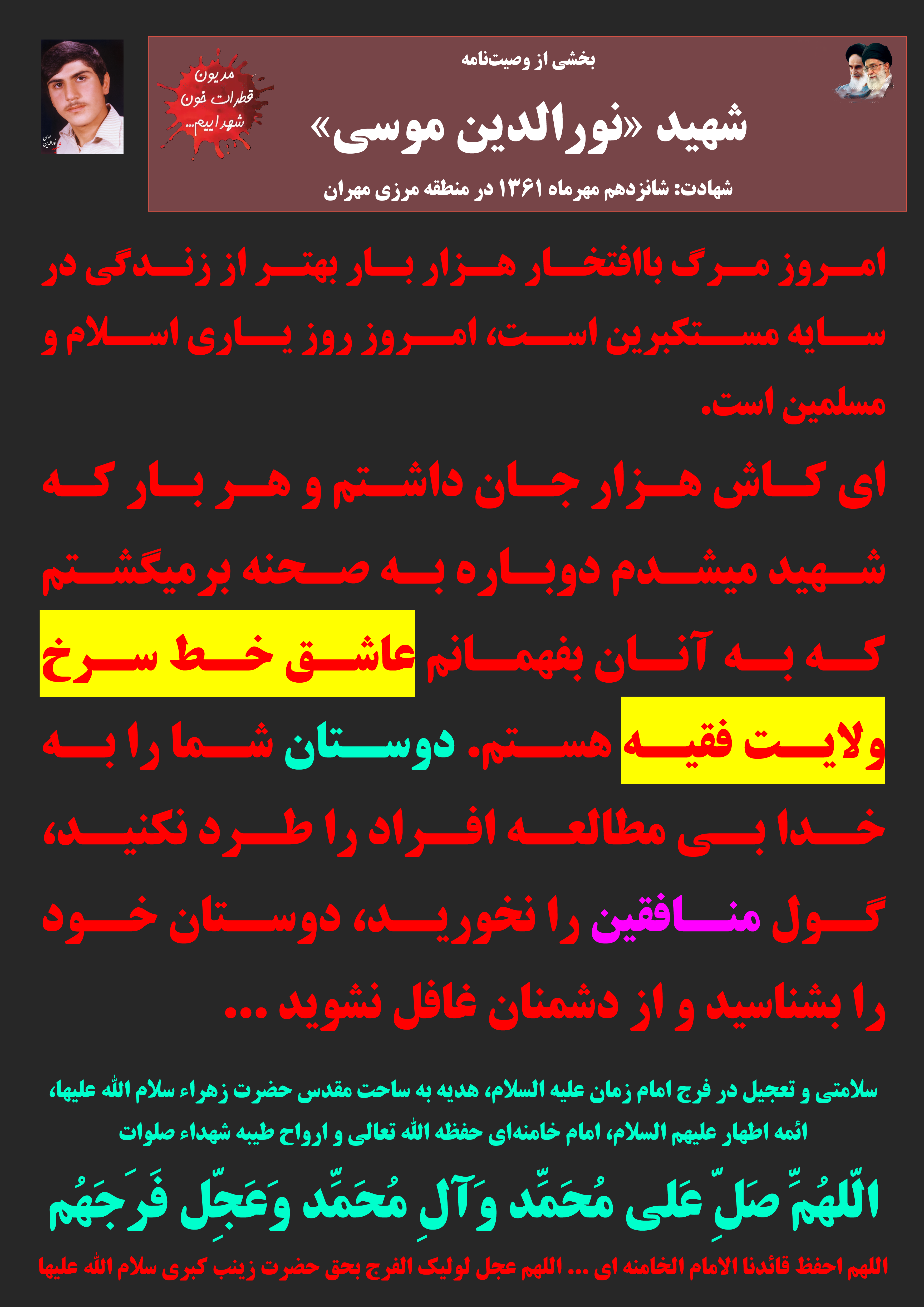بخشی از وصیتنامه شهید «نورالدین موسی»