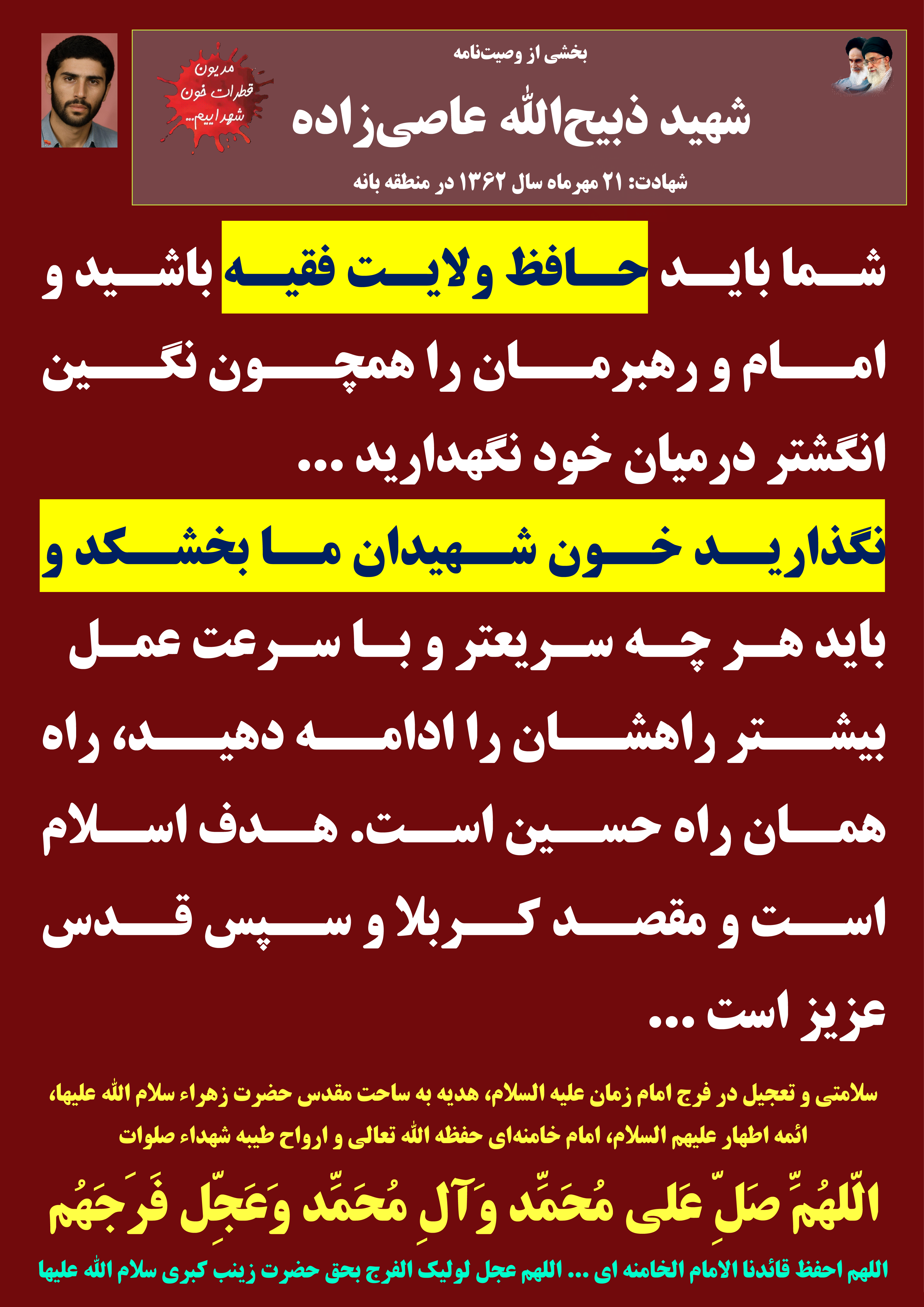 بخشی از وصیتنامه شهید ذبیحالله عاصیزاده