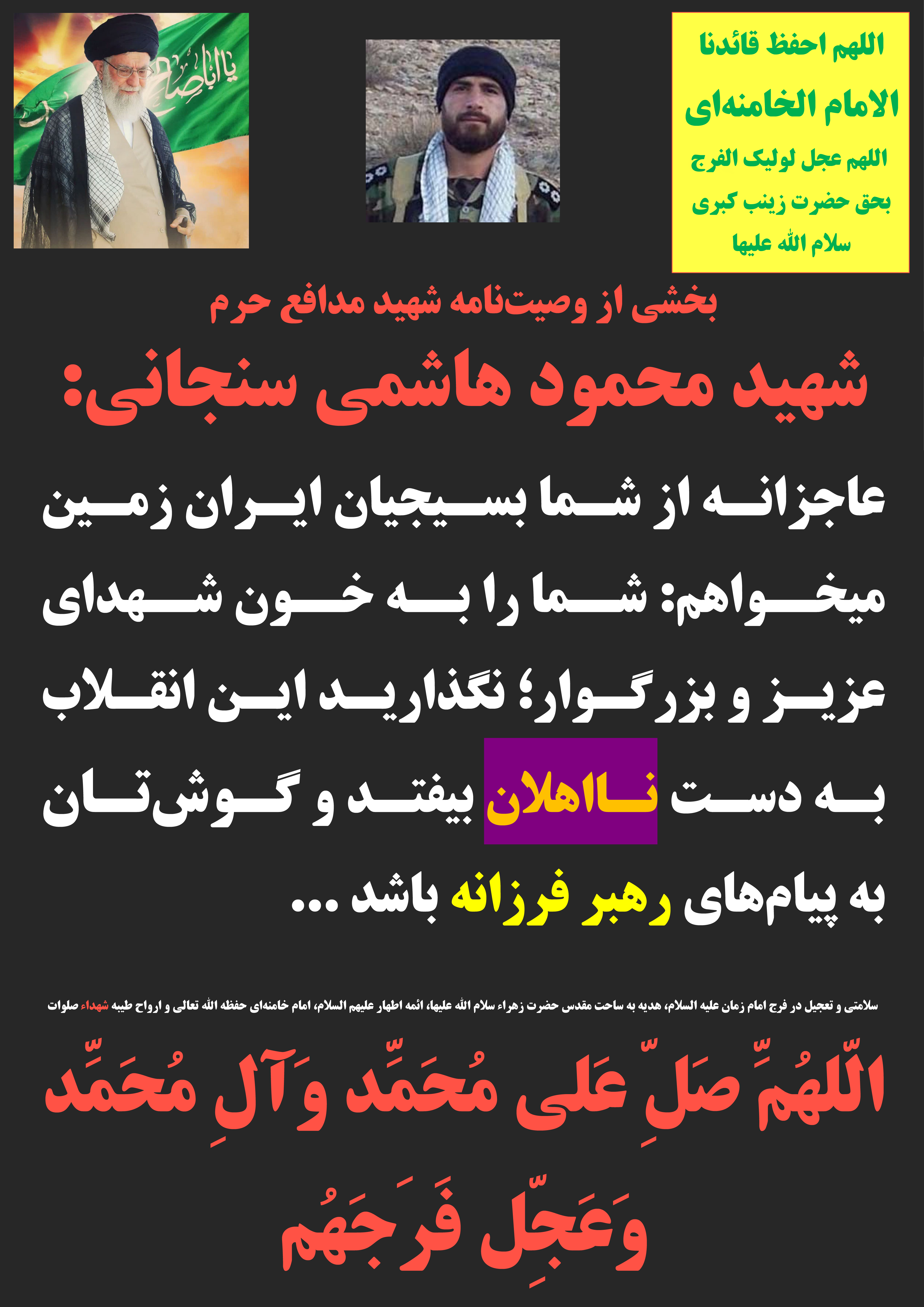 بخشی از وصیتنامه شهید مدافع حرم شهید محمود هاشمی سنجانی: