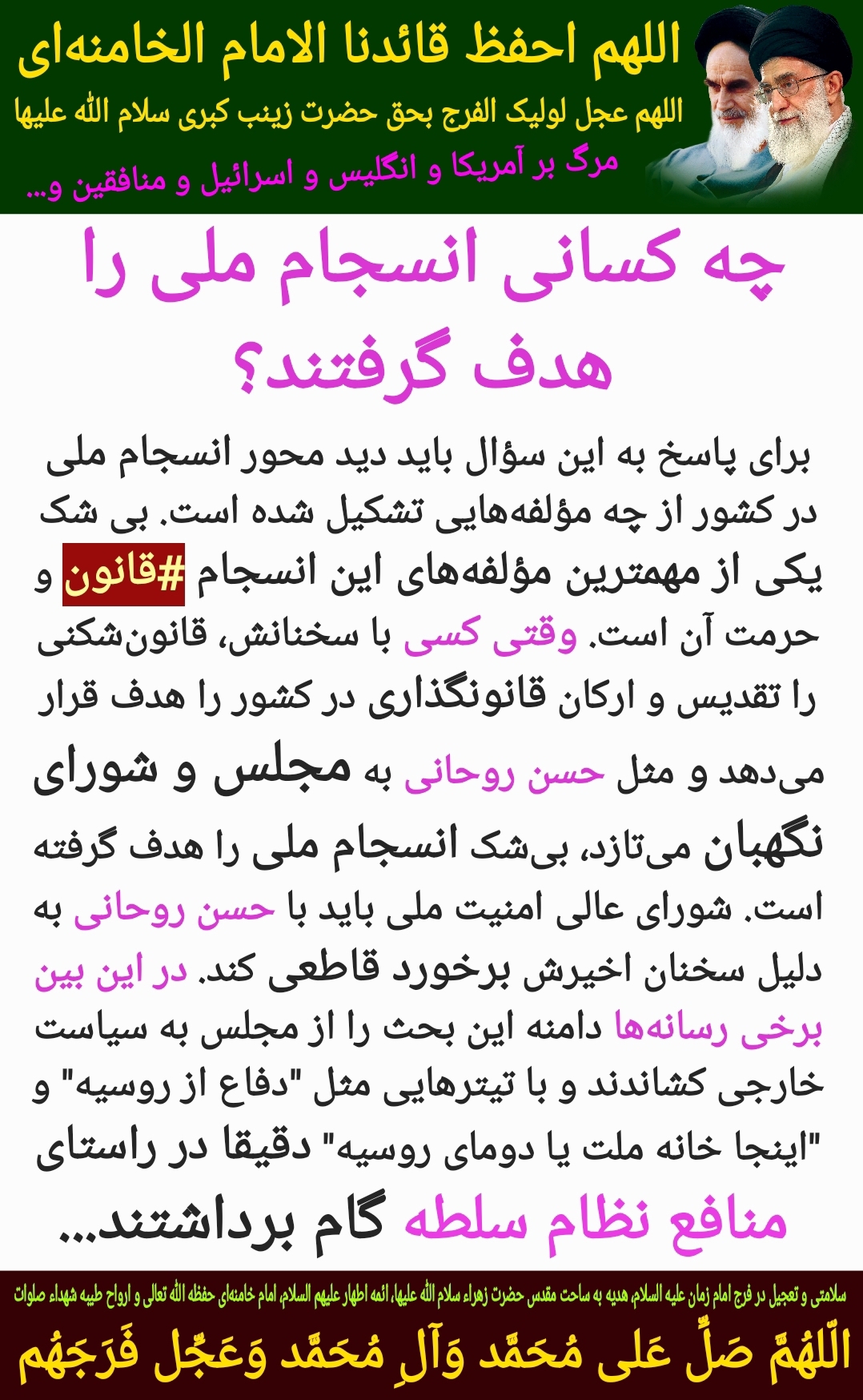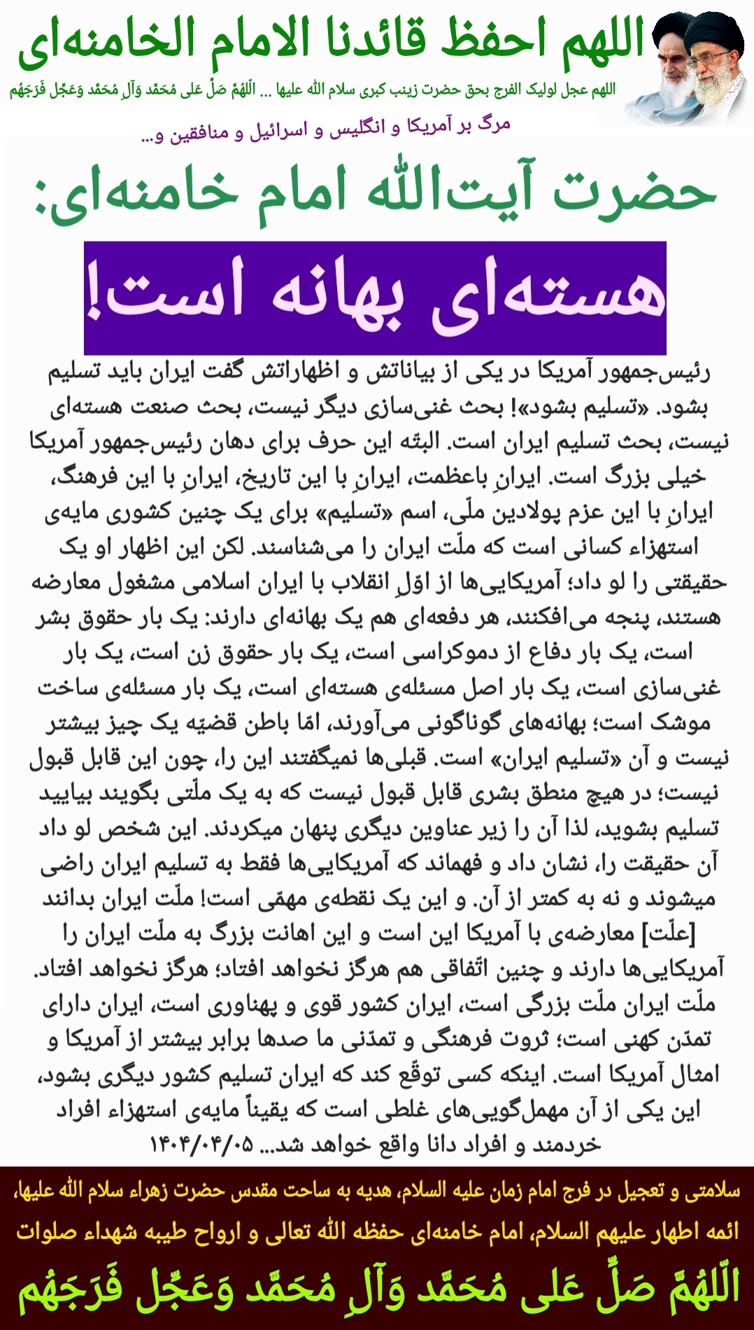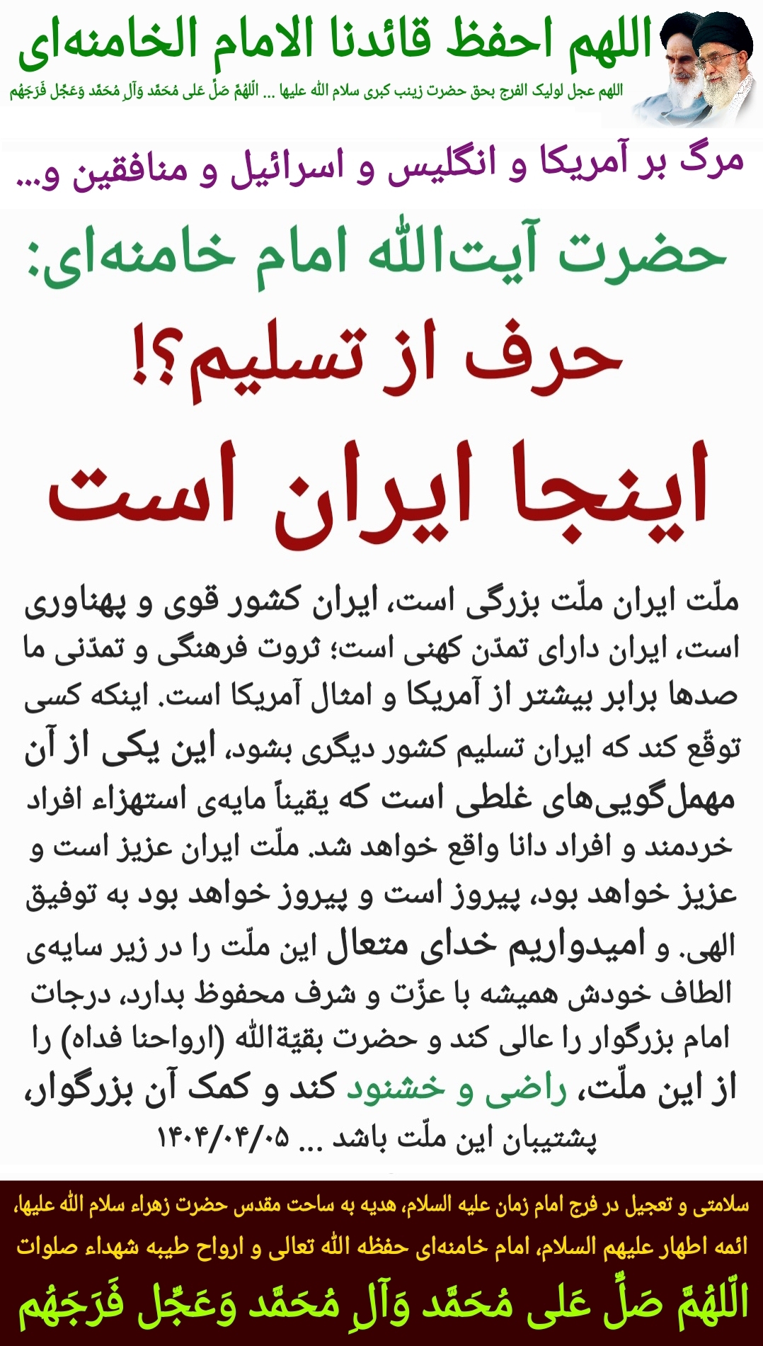 گوش به فرمان امام باشید ... زیرا سخن او سخن قرآن است. خداوند وجودش را تا انقلاب مهدی(عج) حفظ کند ...